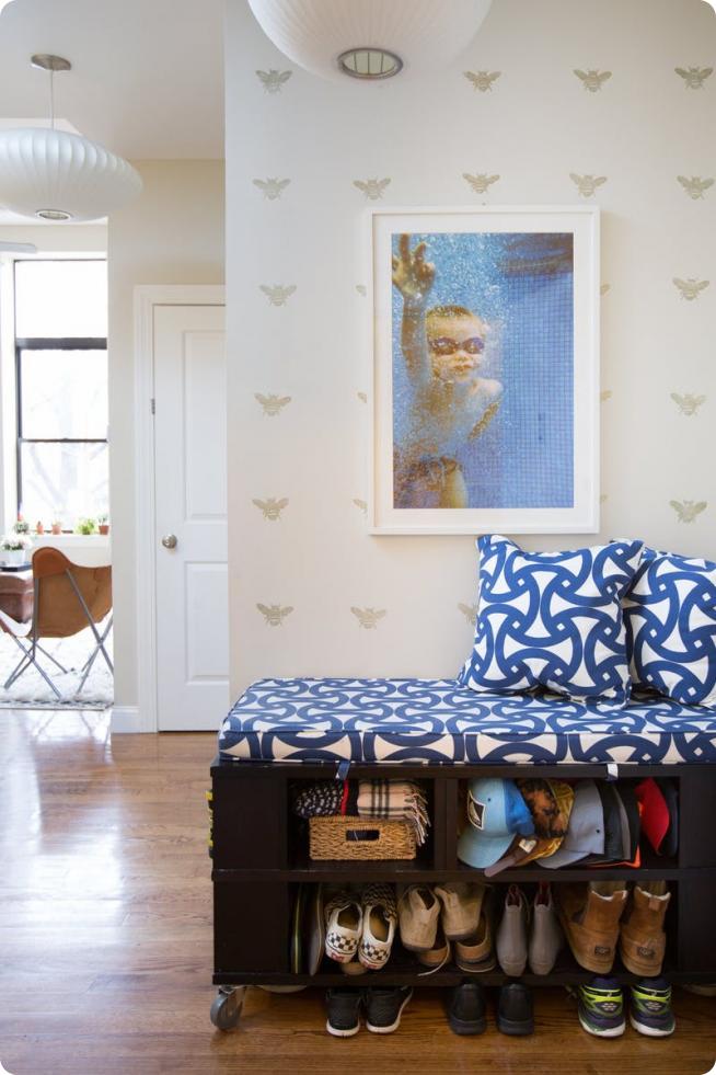 Чтобы спрятать запасное белье, подушки, сумки, книжки, можно использовать скамейки. Скамейки также удобно размещать как в прихожей, так и в спальне, используя их и как место для хранения, и для сидения.