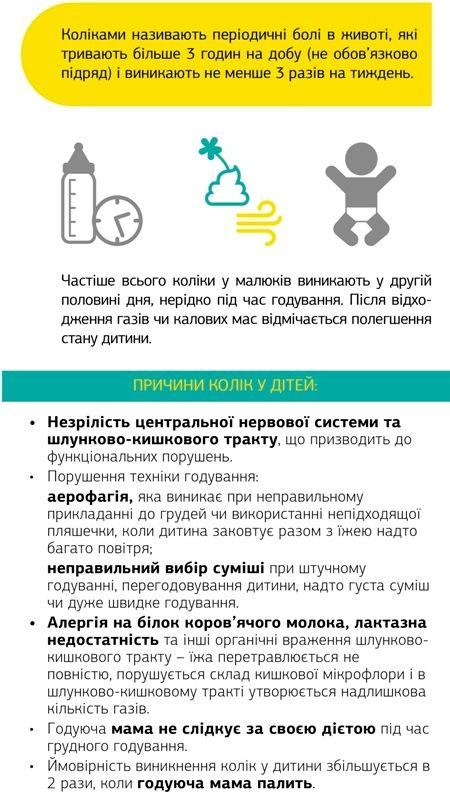 В первые 3 месяца жизни ребенка происходит адаптация желудочно-кишечного тракта к новым внеутробным условиям жизни: формируется ферментная система, микрофлора кишечника, а также отделы нервной системы, отвечающие за работу ЖКТ. Таким образом детки ощущают колики - периодические боли в животе, которые обычно беспокоят более 3 часов в день (не обязательно подряд) и более 3 раз в неделю. Ухудшают ситуацию еще различные факторы, такие как нарушение техники кормления (когда ребенок заглатывает слишком много воздуха во время приема пищи), не соблюдение мамой диеты, курение мамы увеличивает частоту появления и силу коликов в 2 раза, неправильный подбор смеси при искусственом вскармливании, слишком густая смесь и т.д. Хочу поделиться полезной информацией, как улучшить жизнь ребенку и себе.