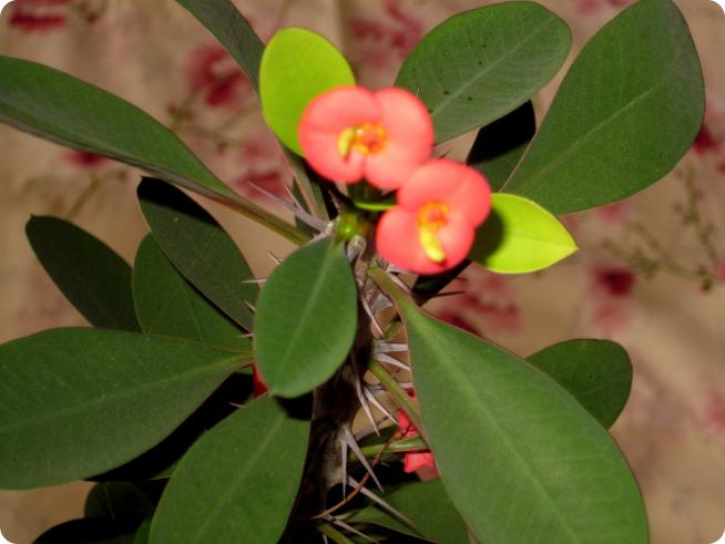 К нам домой случайно попал чуть живой цветок. На нем было несколько листиков и множество колючек. Я не ожидала, что его спасти получиться, поэтому особого внимания не уделяла. Но и выбрасывать не стала – поставила на не загромождённый подоконник. Удивлению моему не было предела, когда я увидела на нем цветочек. Я даже руками попробовала – не положил ли его кто-то на мою «колючку».
