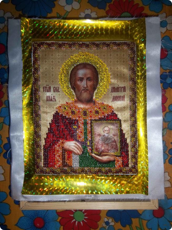 Донечка якраз закінчила нову роботу по вишивці бісером - це мае бути подарунок на день Ангела її другу. Нова для нас справа - вишивка бісером, але Алінка дуже любе бісер і тільки з'являється вільна хвилинка, біжить вишивати. Рамочка ще не закінчена ).