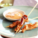 • Куриное филе на шпажках с соусом. Нарежьте филе тонкими полосками, обжарьте и посади на шпажки.